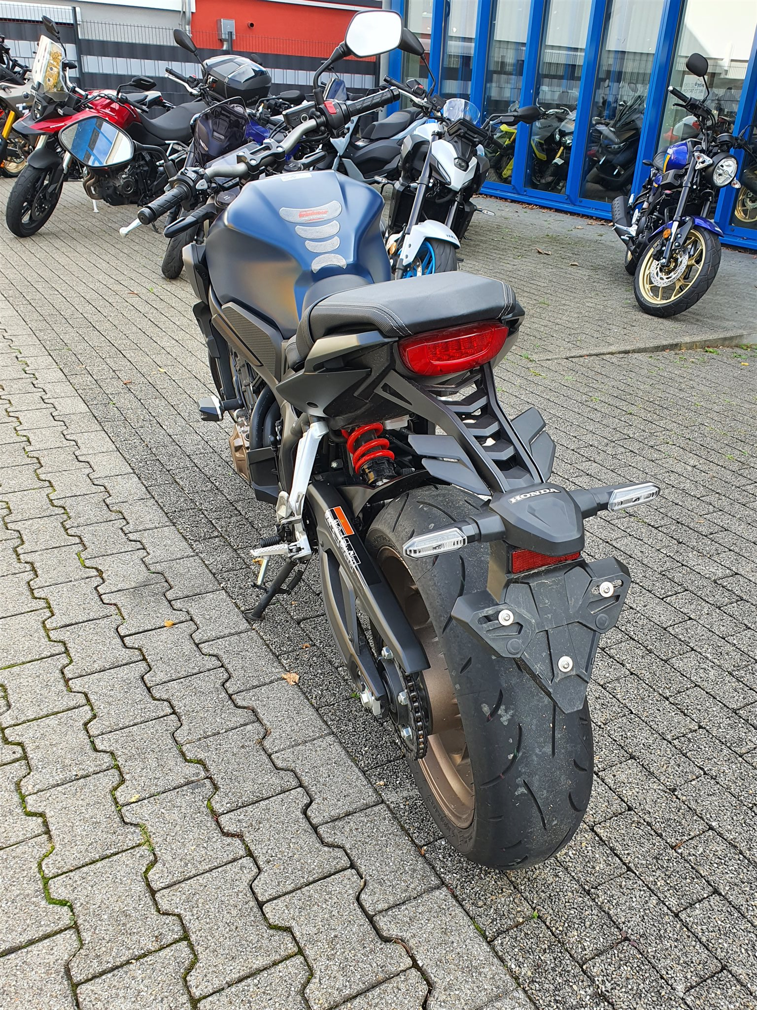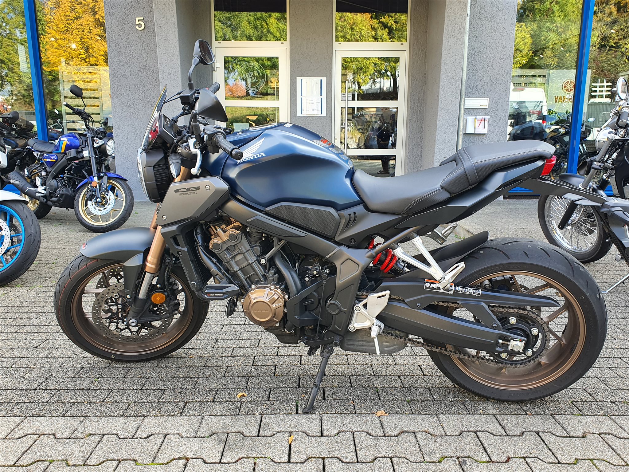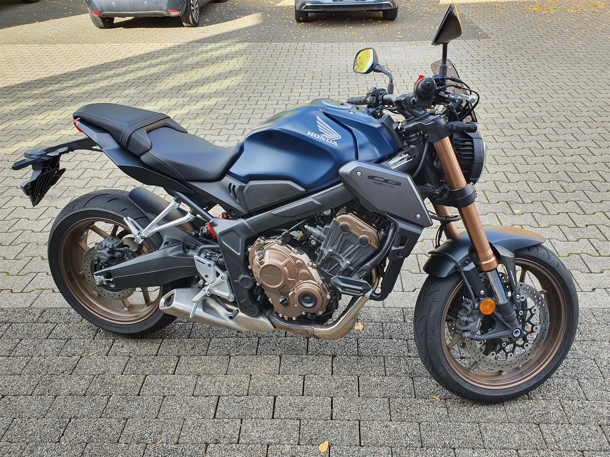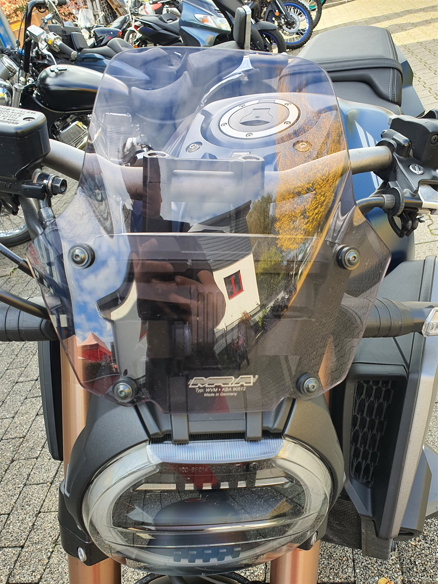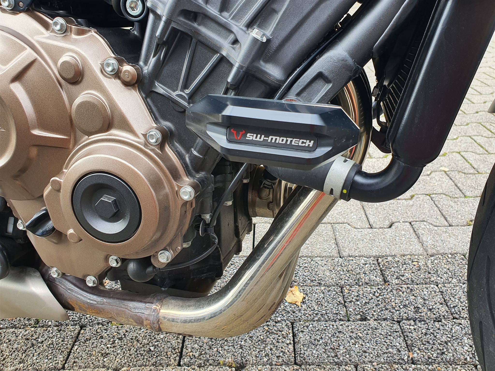 Schöne Honda CB650R mit Sturzpads und getönter Scheibe.